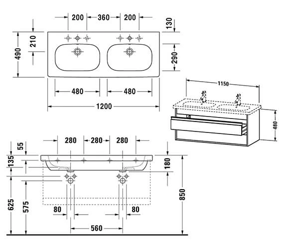 - Dimensions: 1200 x 490 x 180mm (Width x Depth x Height).
