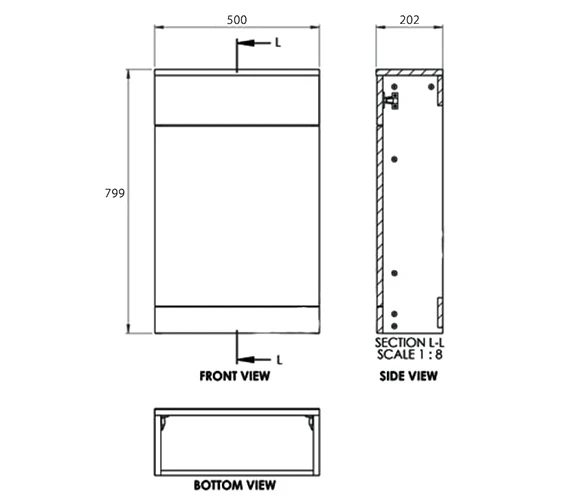 - Size: 500 x 202 x 800 mm [Width x Depth x Height].