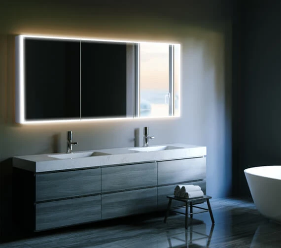 The HIB Qubic 120 Triple Door LED Aluminium Mirror Cabinet is IP44 rated and electrically safe for use in any bathroom. Supplied with soft-close hinges and integrated charging sockets for use with toothbrushes, shavers and trimmers, this unit is designed with three doors on the front for easy opening and access as well. Boasting incredibly unique LED colour temperature changing illumination, this product is operated by a simple wave of the hand to turn it off and on and changes between warm and cool white illumination with ease.