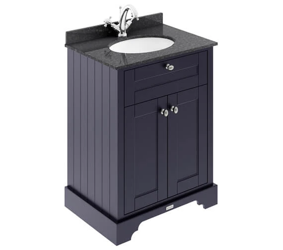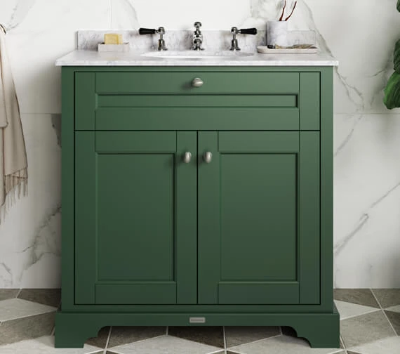 The Hudson Reed Old London Floor Standing Vanity Unit and Basin with Marble Worktop is supplied rigid for truly efficient installation and includes a knob-style handle and soft closing doors. Complete with a classic white ceramic basin on top and suitable for placement within any modern or traditional bathroom layout. This product does not include the tap or the waste shown in the accompanying image.