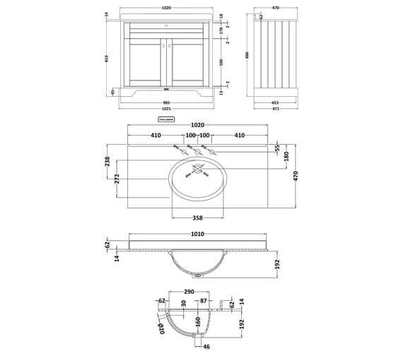 - Size for 1000mm: Depth 470mm x Height 268mm.
