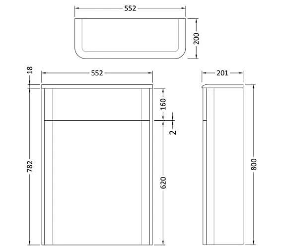 - Size: Width 552mm x Depth 201mm x Height 800mm.