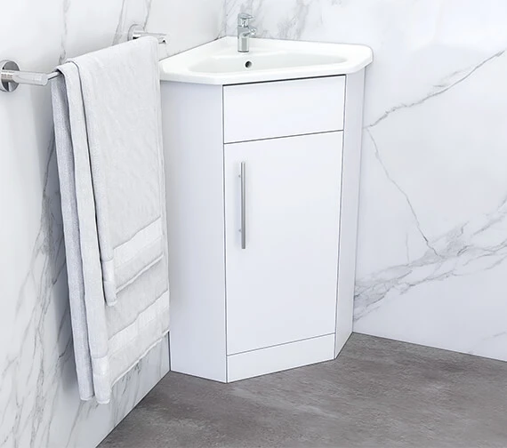The Kartell K-Vit Impakt Single Door Corner Bathroom Vanity Unit With Basin will steal your heart instantly. Created with care, the splendid cabinet is fit for the finest bath areas. The floor-standing vanity unit includes a basin with a white finish and comes with a compact design perfect for smaller bathrooms, cloakrooms and contains all your favourite features. The cabinet has a rigid backboard. The unit is manufactured using high quality MDF for longevity and is supplied rigid for easy installation.