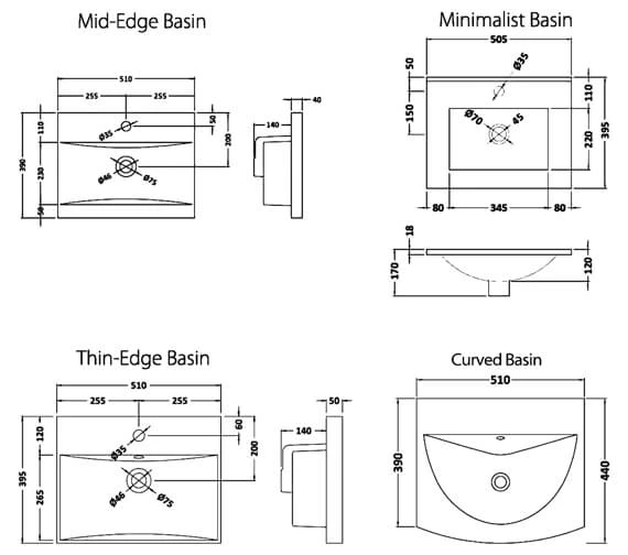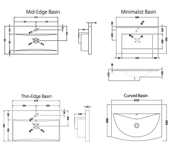 - Basin in different styles available: Minimalist, Mid-Edge, Mid-Edge and Curved – [Optional].