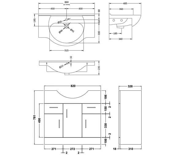 - Sizes: Depth 328mm x Height 781mm.