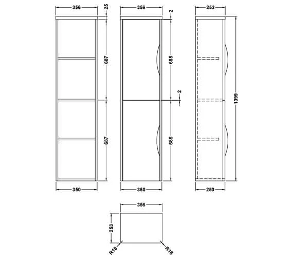 - Sizes: Width 356mm x Depth 253mm x Height 1399mm.