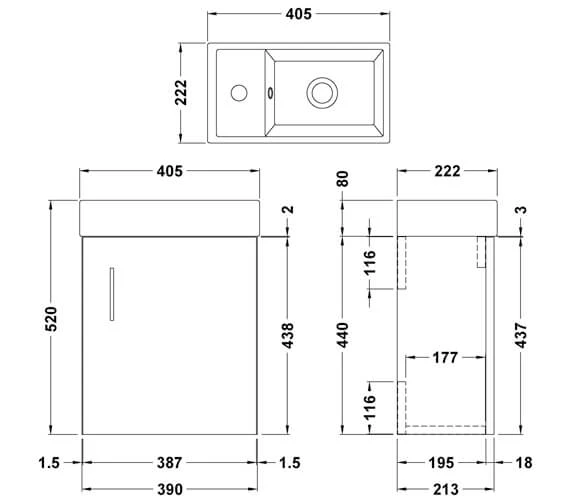- Sizes: Width 390mm x Depth 213mm x Height 440mm.