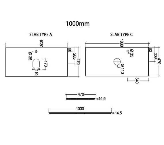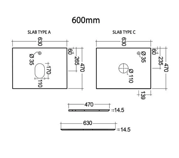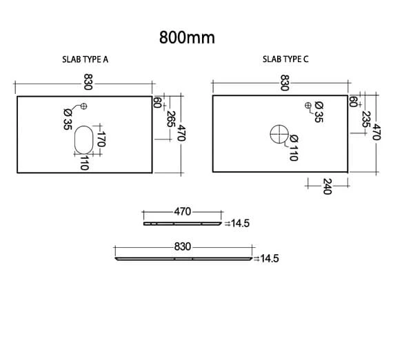 - Basin Cutout Dimensions: 110 x 170mm [width x Depth].