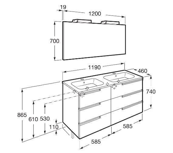 The Roca Victoria-N Vanity Unit Pack is a fine combination of Vanity, Mirror and Basin. The base vanity unit has a fabulous square design for installation in well-appointed bathrooms. The compact, modern design extends storage space within the 6 soft close drawers. The integral basin has a vitreous china construction and allows a generous fill and a refreshing wash. Its rectangular form lends it an easy and flexible approach to installation. The high quality ceramic of this durable basin is enhanced by a crisp white finish. It is supplied with a well-coordinated wall hung a mirror for clear images aiding in daily grooming.