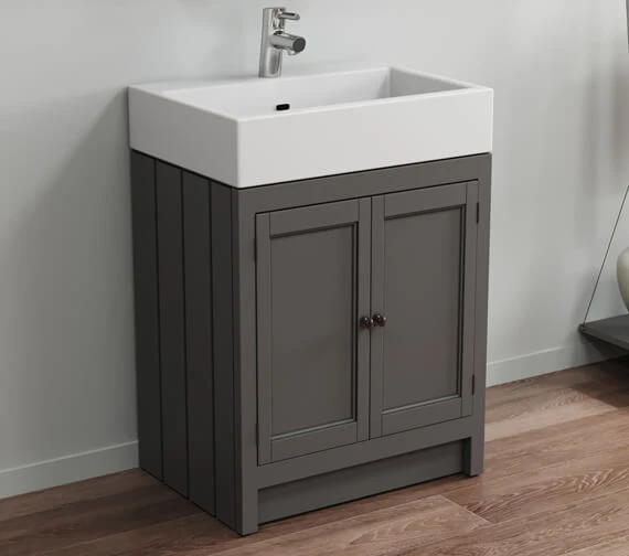 The Roper Rhodes Hampton Vanity Unit with Basin features a contemporary and stylish design that will add a new dimension to your bathroom. With under-counter storage space, this compact unit makes the best of the space available. The five-piece twin doors feature tongue and groove effect side panels that give the unit a multi-faceted look while also making it stand out from the crowd. It is fitted with magnetic catches for a luxurious feel and smooth opening and closing action. The sturdy