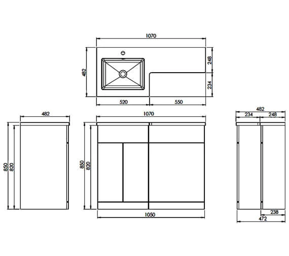 - Size: Width 1050mm x Depth x 482 x Height 850mm.