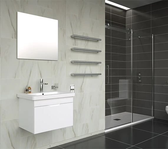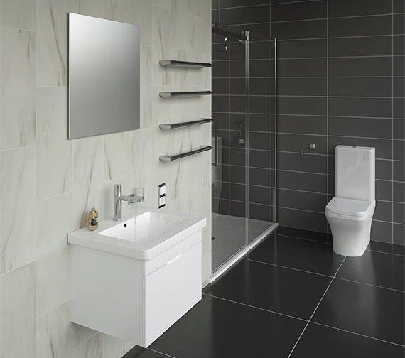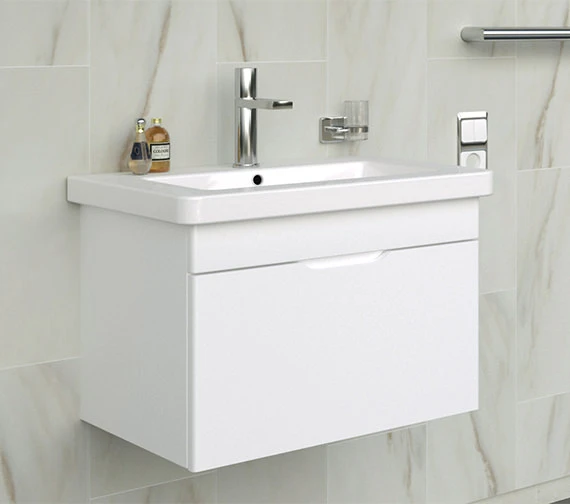 Saneux Indigo 1 Drawer Unit with optional features a very intelligent concept and design which combines a standard basin with a furniture unit. It is designed to be very easy to use and has plenty of storage space. The basin is manufactured using the best quality ceramic, for long-term performance. The furniture unit is made using WR wood composite and is coated with an immaculate gloss white and dove grey finish that makes this piece visually appealing and easy to clean. With appealing dimensions, it is compact enough to fit most bathrooms and comes with five years of guarantee against any manufacturing defects.